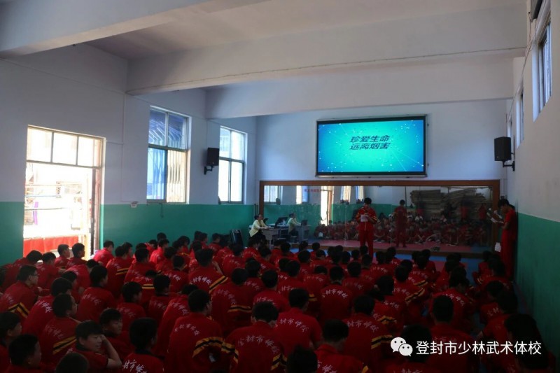 5月31日是全国控烟宣传日。为了营造宣传氛围,提高全校师生的知晓率,今天,登封市少林武术体校不仅在校园醒目处张贴了各种禁烟标志及图片,而且上午10:00在演武厅开展了一堂以“珍爱生命,远离烟害”为主题的禁烟教育活动课,给孩子们送上了一份特殊的礼物。