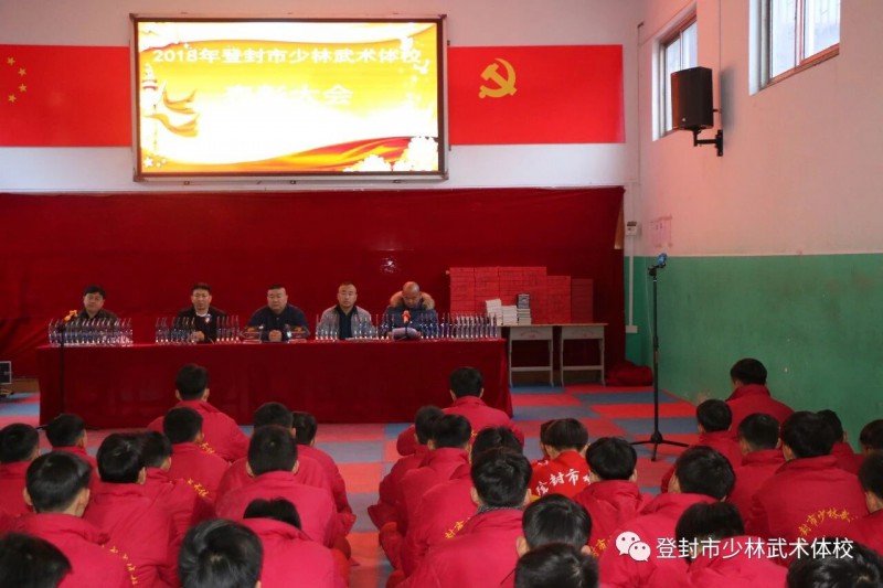 为了鼓励先进,引导全体学生逐步形成“乐于学习、自主坚毅”的学风,登封市少林武术体校全体师生齐聚训练厅,隆重召开年度总结表彰大会。